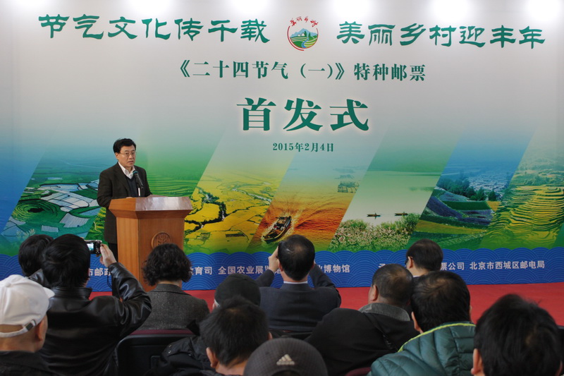 2015年2月4日,《二十四节气(一)》特种邮票首发式在全国农业展览馆四号馆报告厅圆满举行。此次活动由北京市邮政公司、农业部科技教育司、全国农业展览馆、中国农业博物馆共同主办,北京市邮票公司、北京市西城区邮电局共同承办。