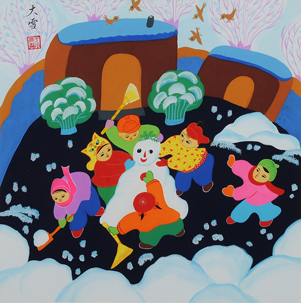 关于大雪时节的习俗,鲁北民间有“碌碡顶了门,光喝红黏粥”的说法,意思是天冷不再串门,只在家喝暖乎乎的红薯粥度日;江苏南京有俗语 “小雪腌菜,大雪腌肉”,即大雪节气一到,家家户户忙着腌制“咸货”,以迎接新年。