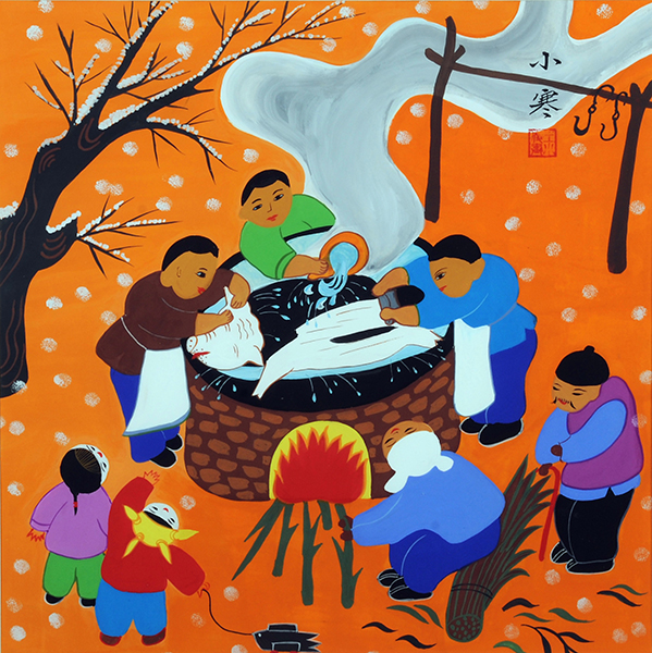 生活上,除注意日常保暖外,进入小寒年味渐浓,人们开始忙着写春联、剪窗花,赶集买年画、彩灯、鞭炮、香火等,陆续为春节作准备。饮食上,涮羊肉火锅、吃糖炒栗子、烤白薯成为小寒时尚。俗语说“三九补一冬,来年无病痛”,说的就是冬令食羊肉调养身体的做法。据《津门杂记》记载,天津地区旧时有小寒吃黄芽菜的习俗。黄芽菜是天津特产,用白菜芽制作而成。冬至后将白菜割去茎叶,只留菜心,离地二寸左右,以粪肥覆盖,勿透气,半月后取食,脆嫩无比,弥补冬日蔬菜的匮乏。而现代人们的生活水平提高了,各种蔬肉食,四季都有,不再像过去那样为冬日蔬菜的稀缺而担忧。