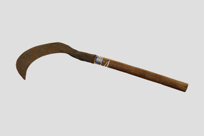 藏品-传统农具-收获工具-镰刀陕西省三原县 柄长53厘米 铁刃通长20厘米