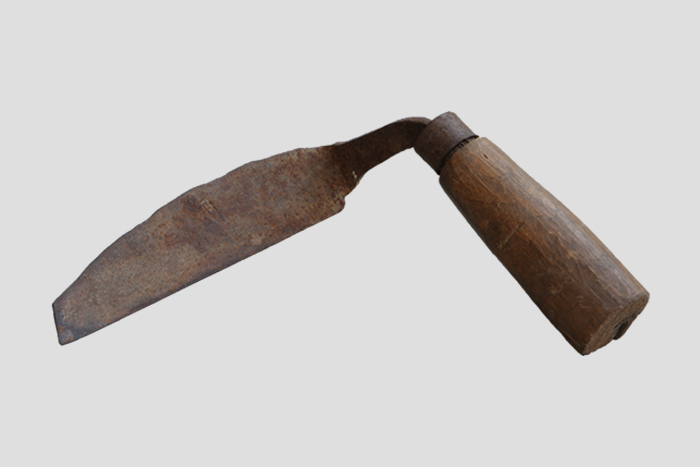 藏品-传统农具-收获工具-韭菜刀辽宁省建平县万寿乡 柄长14.5厘米 铁刃长18厘米