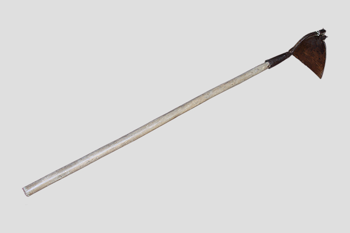 藏品-传统农斗-中耕除草工具-锄陕西省延安市柳林镇 柄长143厘米 铁制部件长24厘米