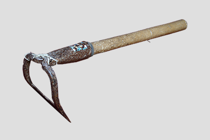 藏品-传统农具-中耕除草工具-漏锄陕西省延安市柳林镇 柄长42厘米 铁制部件长13厘米