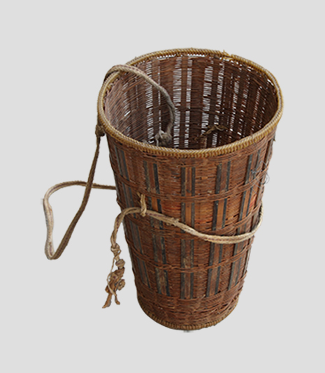 藏品-传统农具-播种移栽工具-刀篓广西壮族自治区巴马县东山乡 上口径12.5厘米 下口径7.5厘米 高18厘米