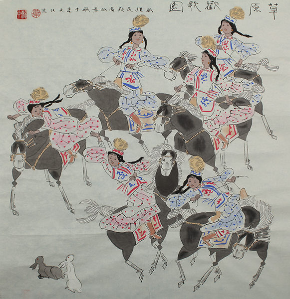 藏品-当代名人书画-草原欢歌图