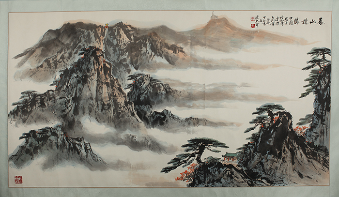 藏品-当代名人书画-泰山览胜陈大章国画 长152厘米 宽82厘米