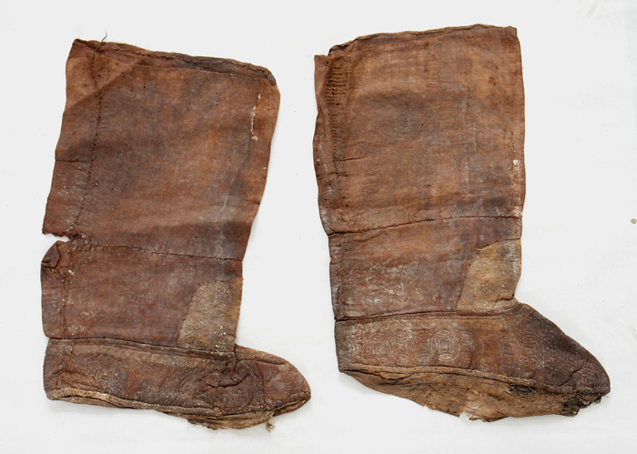 藏品-古代丝织品-丝绸绣花袜子