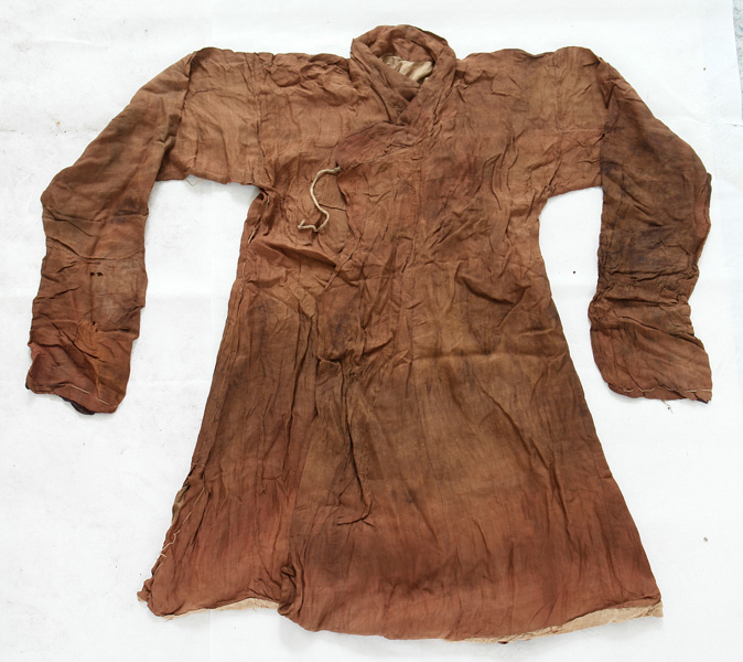 藏品-古代丝织品-黄色真丝织锦短上衣南北朝-唐 衣长133厘米 两袖通长200厘米
