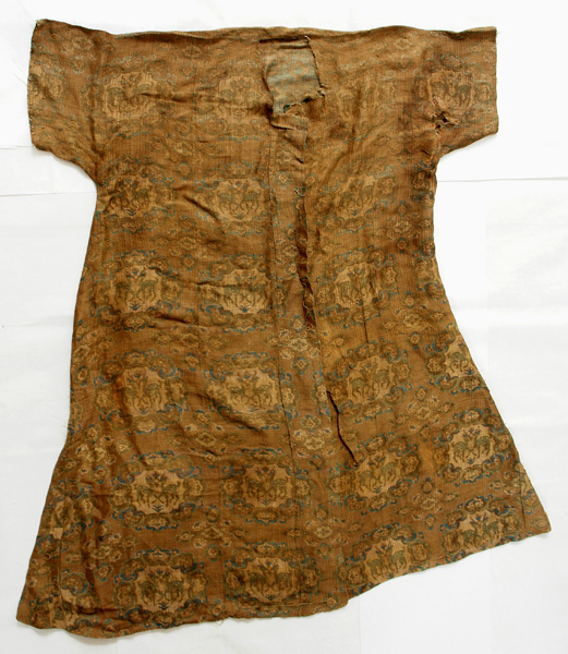 藏品-古代丝织品-团花对鹿纹织锦长衫