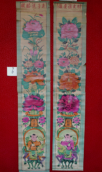 藏品-高密年画-麒麟送子来谁要谁发财条屏 20世纪50年代末 长147厘米 宽27厘米