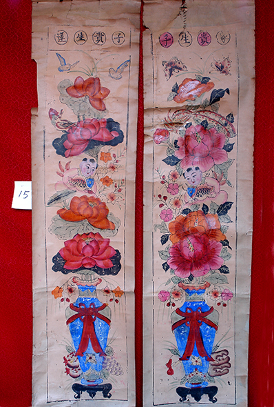 藏品-高密年画-家贵生子子贵生莲对屏 20世纪50年代 长157厘米 宽39厘米