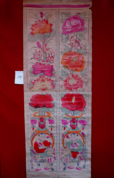 藏品-高密年画-连生贵子连体对屏20世纪50年代初 长182厘米 宽38厘米