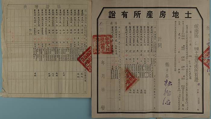 藏品-土地证-皖南区歙县土地房产所有证及增表