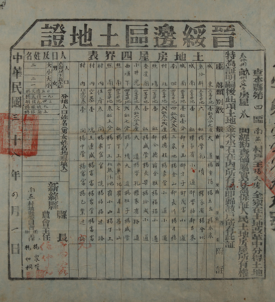 藏品-土地证-晋绥边区新绛县土地证民国38年 山西