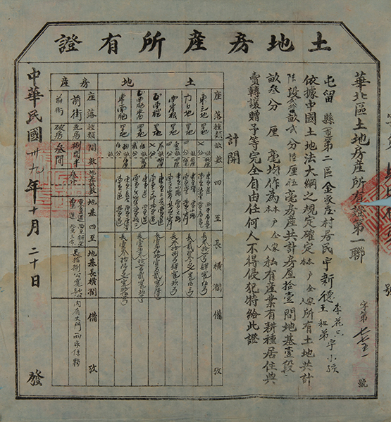 藏品-土地证-华北屯留县土地房产所有证民国39年 山西