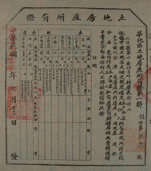 藏品-土地证-沁源县郝钟山土地房产所有证1950年 山西