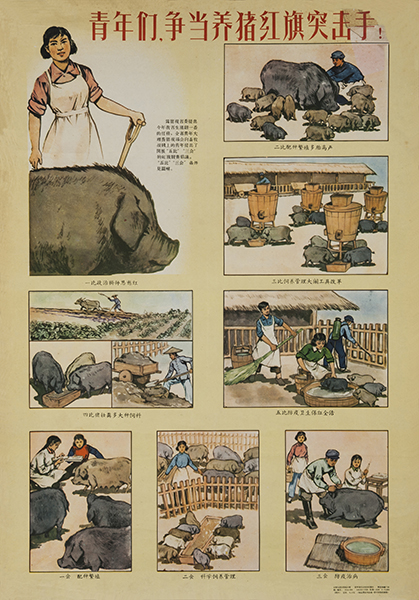 藏品-农业宣传画-青年们争当养猪红旗突击手