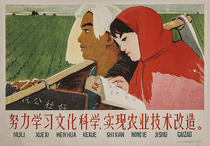藏品-农业宣传画-努力学习文化科学,实现农业技术改造周正创作 长77cm*宽53cm 1959年12月版