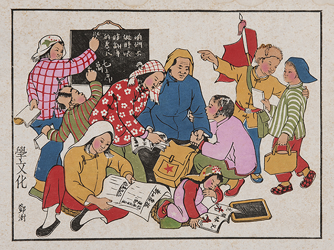 藏品-农业宣传画-学文化邓澍创作 长29cm*宽20cm 1940-1950年代版