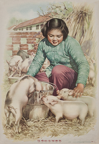 藏品-农业宣传画-优秀的女饲养员金梅生创作 长77cm*宽54cm 1960年8月版