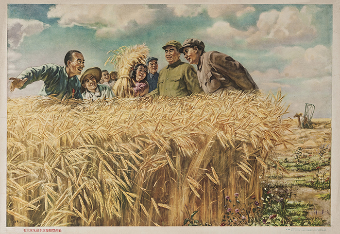 藏品-农业宣传画-毛主席朱副主席参观丰产社麦秆创作 长77cm*宽53cm 1955年10月版