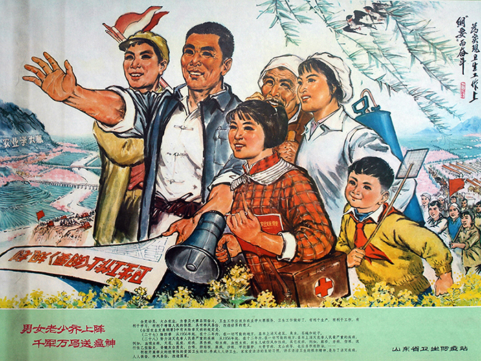 藏品-农业宣传画-男女老少齐上阵千军万马送瘟神 山东省卫生防疫站创作 长77cm*宽54cm 无年代
