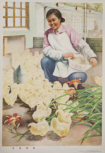 藏品-农业宣传画-公社鸡场临汾展览馆张思淮创作 长77cm*宽54cm 1975年10月版