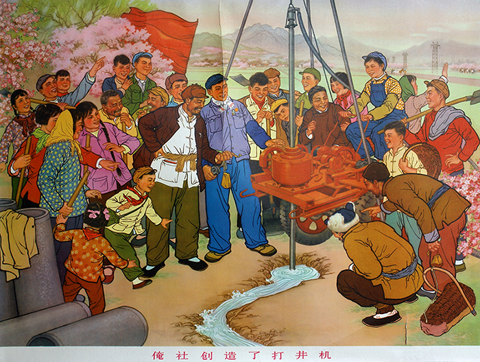 藏品-农业宣传画-俺社创造了打井机张和英 蔡旭长创作 77cm*宽54cm 1973年6月版
