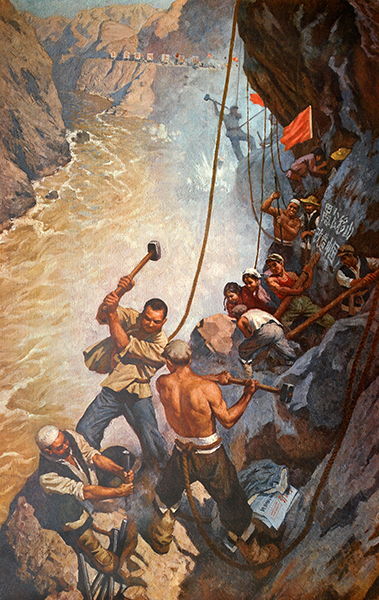 藏品-农业宣传画-劈山引水 周大正创作 长77cm*宽54cm