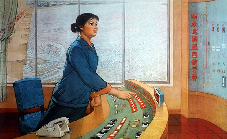 藏品-农业宣传画-扬起长江水灌溉万顷田 李华英创作 长77cm*宽54cm 1976年3月版