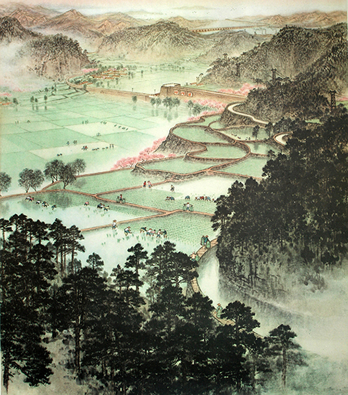 藏品-农业宣传画-向阳渠畔春意浓江苏省五七干部学校创作组创作 长77cm*宽54cm 1972年11月江苏省五七干部学校创作组版