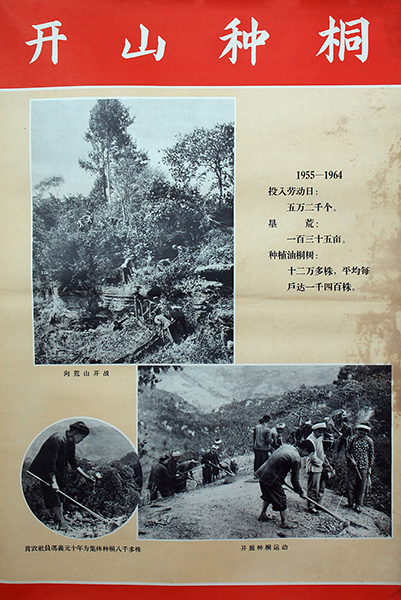 藏品-农业宣传画-荒山十年变桐山-开山种桐贵州省正安县龙岗公社龙江大队创作 长77cm*宽54cm 1964年贵州省正安县龙岗公社龙江大队版