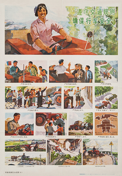 藏品-农业宣传画-农业机械安全挂图-4遵守交通规则确保行车安全 湖南省革命委员会 湖北省革命委员会创作 长77cm*宽53cm 1976年6月湖南省革命委员会 湖北省革命委员会创作版