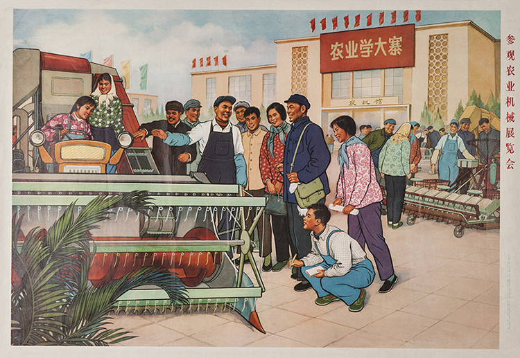 藏品-农业宣传画-参观农业机械展览会刘王斌创作 长77cm*宽53cm 1974年7月版