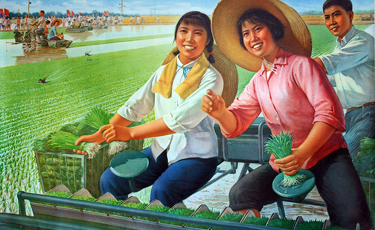 藏品-农业宣传画-机器插秧好黄妙发创作 长77cm*宽54cm 1973年8月版
