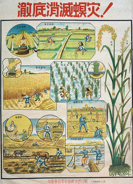 藏品-农业宣传画-彻底消灭螟灾中南军政委员会农林部创作 长55cm*宽39cm 1950年12月中南军政委员会农林部版