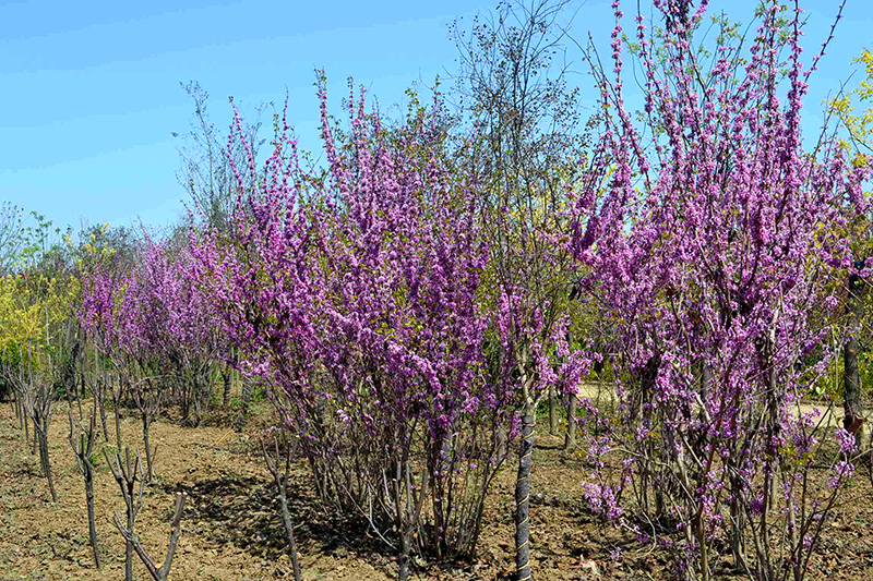 观赏特性:灌木或小乔木,丛生。叶全缘,心形。花紫红色,花形似蝶,成团簇状,紧贴枝杆,4月先叶开花。夹果扁平。