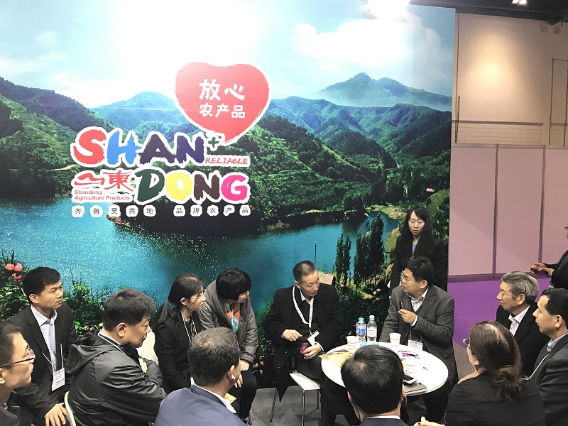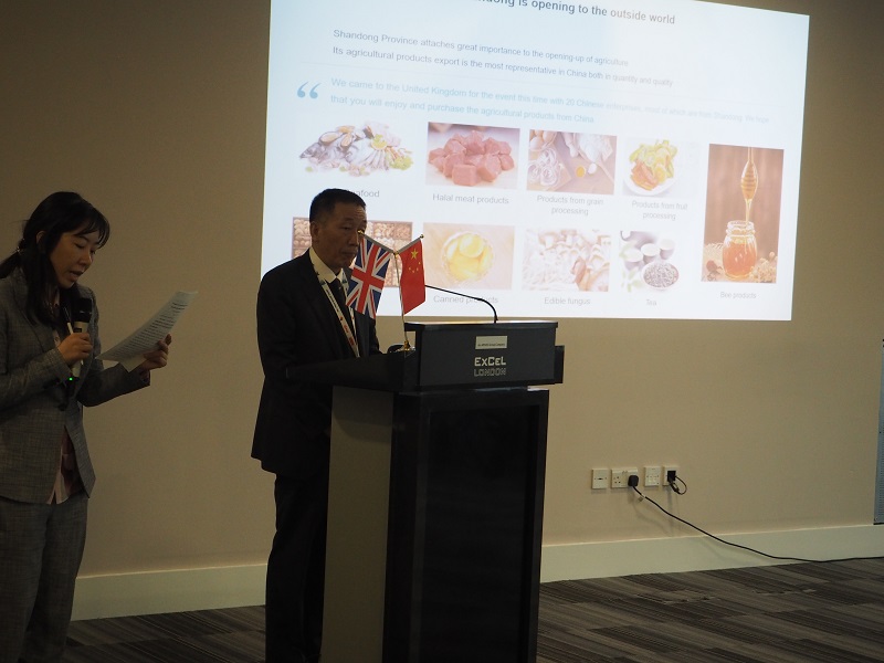 3月20日上午,刘新录与姜卫良一行拜访了中国驻英国使馆经济商务参赞处,与张斌参赞重点座谈了解了我国对英农产品贸易和农业投资情况,探讨了我对英农产品出口的前景和英国脱欧可能对农产品贸易带来的影响。随后赴场馆参加了展会开幕式,与此次展会主办方蒙哥马利博览集团总经理托比·旺德先生及展会总经理戴明·安格斯先生进行了见面交流。3月20 日下午,我们和山东省农业厅联合举办了“中国山东品牌农产品推介洽谈会”。英国农业渔业及食品部官员赫尔利先生,英国农业园林发展局出口部部长加尼尔先生,英国国际贸易总署农业生物经济部主任布里奇女士,英国男爵科霍恩先生参加了洽谈会并致辞,刘新录和姜卫良分别代表中国农业部展团和山东农业厅致辞。洽谈会共有20家英国贸易商参加,我国6家参展企业代表和英方3家贸易商分别进行了产品和贸易推介,随后在会场和展区内进行了面对面贸易洽谈和对接。