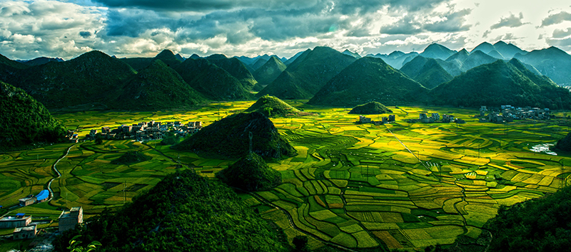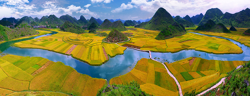 八宝稻作生态系统秋季全景图