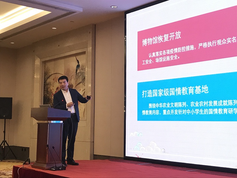 在本次专委会年会上,各委员单位以“后疫情时代专业科技博物馆面临的挑战与应对策略”为主题展开学术研讨。在交流发言中,陈军副馆长阐述了行业博物馆的教育资源具有独特的行业特征和强大的政策支持,具有很强的现实性和社会性,在博物馆的发展中应当更加注重展陈资源的互动性和专业知识的科普化;陈军副馆长还结合新冠肺炎疫情给博物馆行业带来的影响和变化,介绍了我馆在新冠肺炎疫情防控期间的工作思路和具体作法,并且提出了在后疫情时代下,中国农业博物馆在有序开馆的基础上,要打造国家级国情教育基地,培育品牌项目和行业领军人才,充分发挥室外优势以增强观众体验,加快推进信息化建设打造“智慧农博”,着力提升博物馆的核心竞争力。我们将以此次会议为契机,继续做好科普教育工作,更好服务社会大众,在传承中创新,在创新中发展。