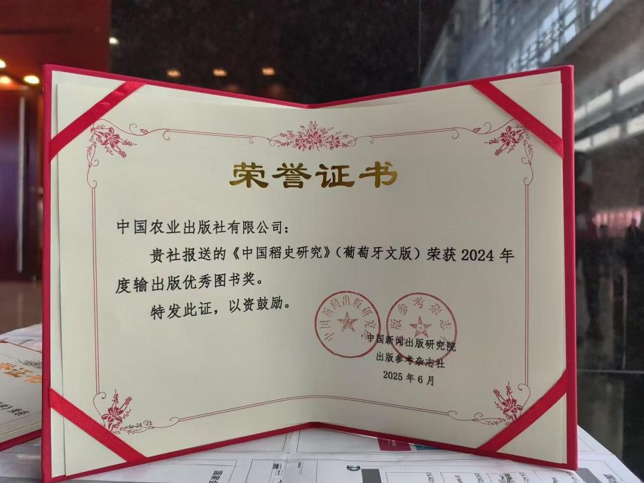近日,中国农业博物馆特聘专家曾雄生学术专著《中国稻史研究》(葡萄牙文版)荣获2024年度输出版优秀图书奖。