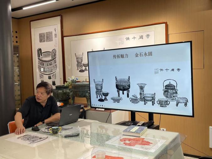 9月13日,九三学社北京市委2025年第二期新社员学习班组织部分社员赴中国农业博物馆参观学习。中国农业博物馆研究馆员、全形传拓技艺代表性传承人贾文忠以“金石学与全形拓技艺”为题作学术分享,全面介绍金石学和全形拓的发展历程、代表人物、制作工艺及当代价值。