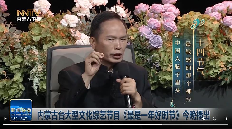 由内蒙古自治区党委宣传部指导、内蒙古广播电视台倾力打造的大文化综艺节目《最是一年好时节》,从10月26日起,每周日21:00在内蒙古卫视、奔腾融媒同步播出。中国农业博物馆研究员、国务院政府特殊津贴专家唐志强受邀做客节目现场,参与节目录制,与专家、主持人一同,带领观众走进“二十四节气”,在时空对话中展现中华民族与自然和谐共生的生活哲学。
