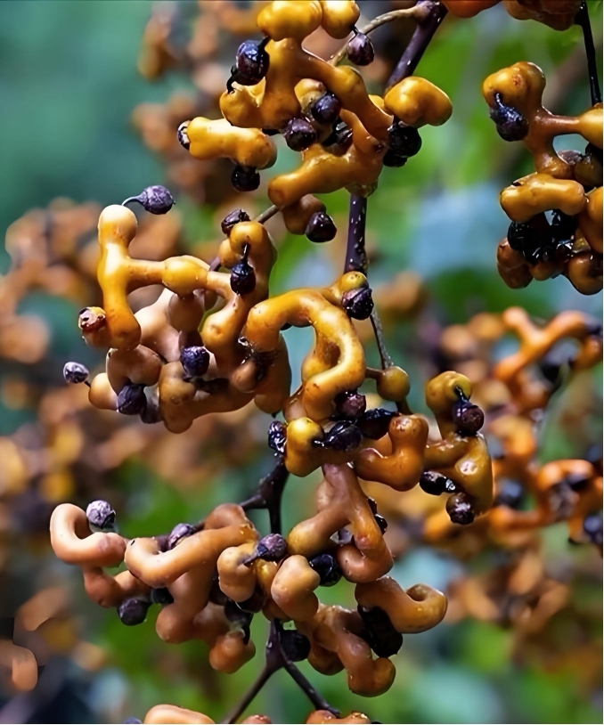 别名木蜜、鸡爪子、万字果等,指的是植物枳椇的肉质果序轴,10月下旬经霜打后成熟,扭曲膨大,形似鸡爪,味道甘甜。而中医所说的枳椇子,指枳椇的种子,晾干后可入药。我国拐枣资源丰富,分布范围广,在河南、陕西、甘肃、河北、山东等地均有栽培。现代研究显示,拐枣富含葡萄糖、果糖、膳食纤维、维生素 C、钾、钙等成分,有助于快速补充能量,促进消化等。拐枣可鲜食,也可酿酒、熬糖。《滇南本草》中记载饮用拐枣酒具有舒通筋络、安神保健的功效。部分地区会将其制成糖稀,搭配花生、芝麻、小米等做成切糕。