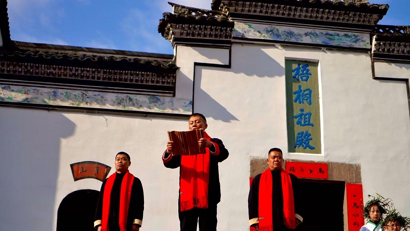祭文诵读声起,主祭以古朴的九华方言,将对自然的敬畏、对春日的祝福,悉数诵入春风之中。陪祭随之导唱《祭春喝彩谣》,每唱罢一句,众人便齐声应和“好啊!”祈愿之声愈发洪亮。