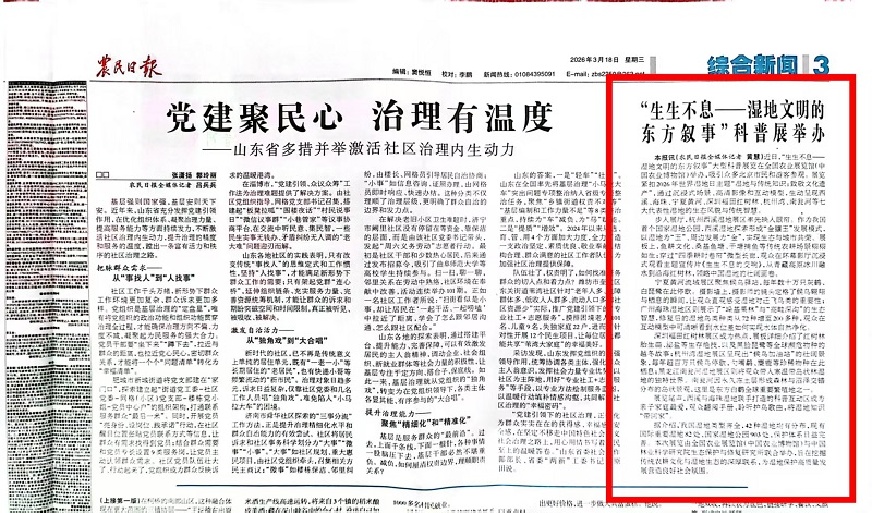 据介绍,我国湿地类型齐全,42种湿地均有分布,现有国际重要湿地82处、国家湿地公园903处,保护体系日益完善。本次展览由全国农业展览馆(中国农业博物馆)与中国林业科学研究院生态保护与修复研究所联合举办,旨在挖掘传统农耕文化与湿地生态的深厚联系,为湿地保护高质量发展营造良好社会氛围。(来源:《农民日报》)