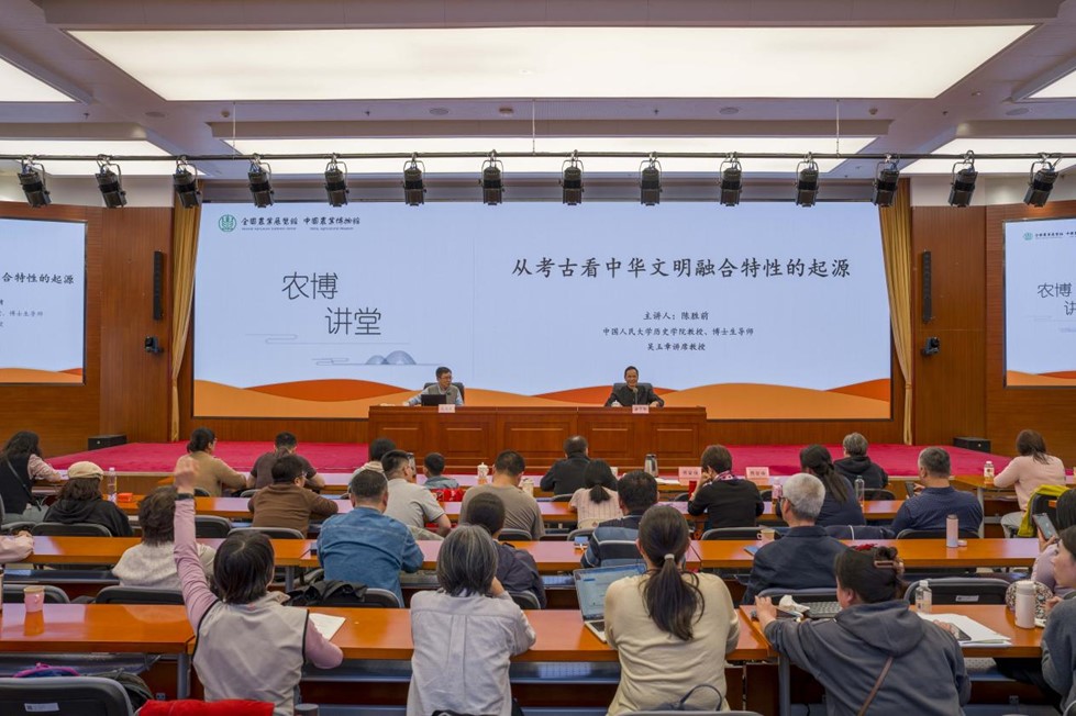 4月10日,中国农业博物馆2026年第一期“农博讲堂”如期举办。本次讲座特邀中国人民大学历史学院教授、博士生导师陈胜前先生,以《从考古看中华文明融合特性的起源》为题作专题学术报告。两百余名馆内外观众到场聆听。