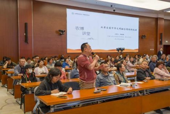 讲座结束后,互动交流环节气氛异常热烈。现场观众结合讲座内容,围绕区域文化交流的具体形式、农业起源等问题踊跃举手提问。陈教授严谨细致的态度和生动接地气的阐释,赢得了全场观众的热烈掌声,也让在场观众对中华文明融合特性的起源与发展有了更为深刻、直观的认知。